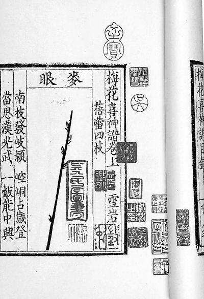 其中释仲仁《梅谱》经过考证是托伪之书,但是传世的所有教导画梅技法的作品中此谱最古,且详细论述了画梅的数种方法,实有很多可取之处。《梅花喜神谱》是最早的以图成谱之作,却是出自作者的个人爱好,只因爱梅花而作此谱,以供天下同好者一起赏玩。“喜神”是宋代俗语,即为“写像”之意。后代学人评价《梅花喜神谱》有冗长、附会之嫌。但是这种为了自己的爱好而辑录成册的行为,恰恰说明了宋时文化的繁荣,以及宋时士大夫对于“舞文弄墨”的喜爱。