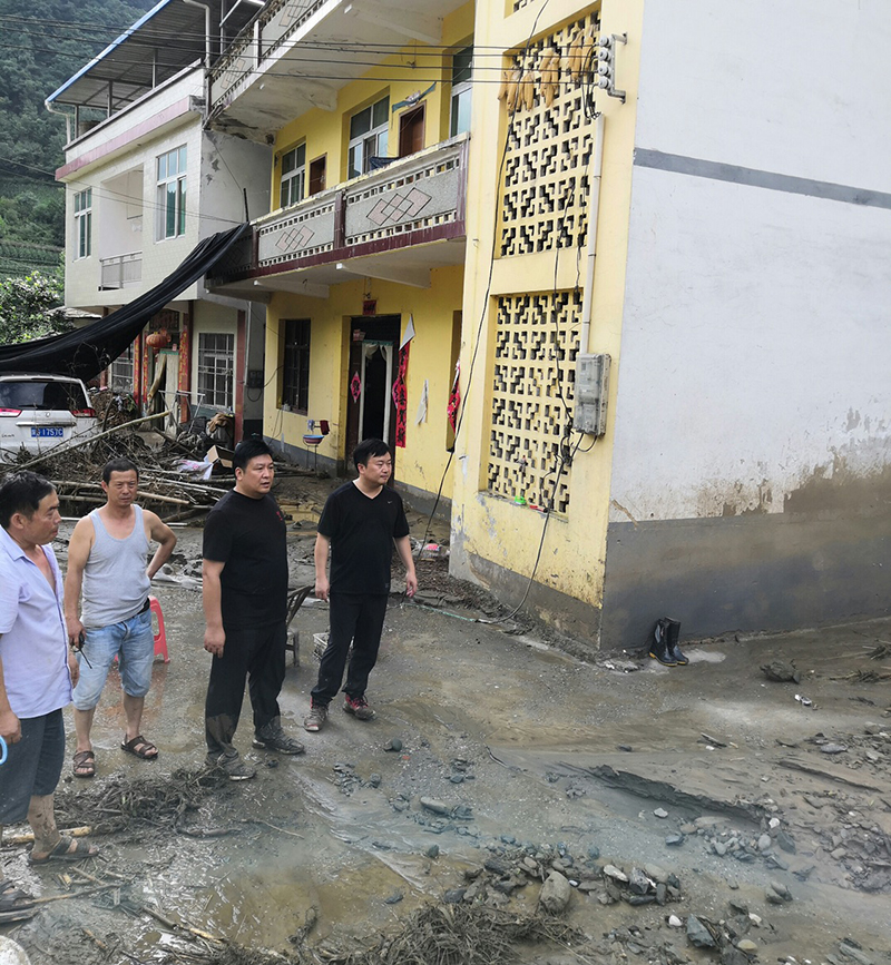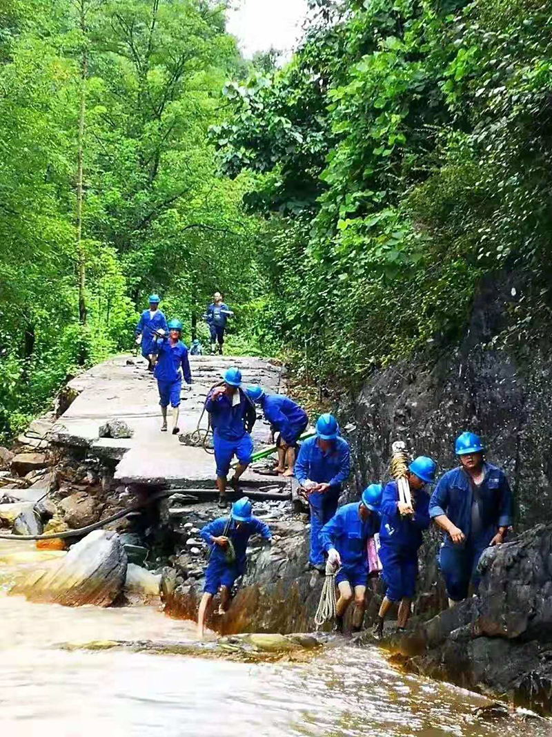 危难关头全县党员干部群众患难相依、无所畏惧的力量,在抗洪救灾中迸发出最强的声音和最坚定的信念!灾情就是命令!交通、水利、电力、通讯等相关部门迅速组建救灾抢险队,奔赴灾区,迅速打响一场抢修攻坚战。交通部门迅速成立5支抢险突击队,调动机械设备50余台,出动人员150余人,赶赴受灾现场连夜抢修应急通道;望着一根根被拦腰斩断的电杆和被撕裂的电线,200余名电力抢修员没有丝毫退缩,而是毅然决然地扛着线缆徒步走向了重灾区,现场重立电杆、架设线路;通讯抢修人员冒着山体滑坡的生命危险寻找光缆故障点,连夜抢修通讯网络;水利人员争分夺秒的疏通了供水管道。
