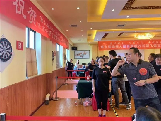 8月11日,第九届残疾人健身周陕西听障飞镖交流比赛在西安举行。残疾人工作者、残疾人及其家属、助残志愿者等90多人共同参加活动。