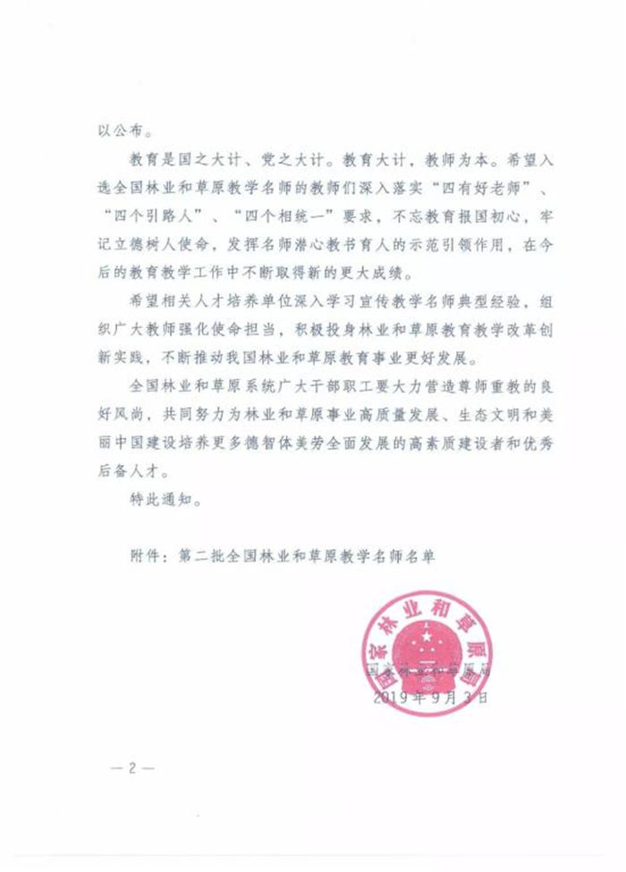 9月3日,国家林业和草原局公布第二批全国林业和草原教学名师,杨凌职院生态环境工程分院林业教研室主任韩东锋教授获全国林业和草原教学名师称号,以表彰其在长期从事森林资源调查的教学和研究工作中所做出的突出成就。