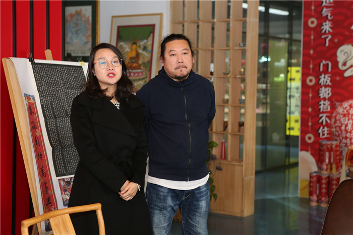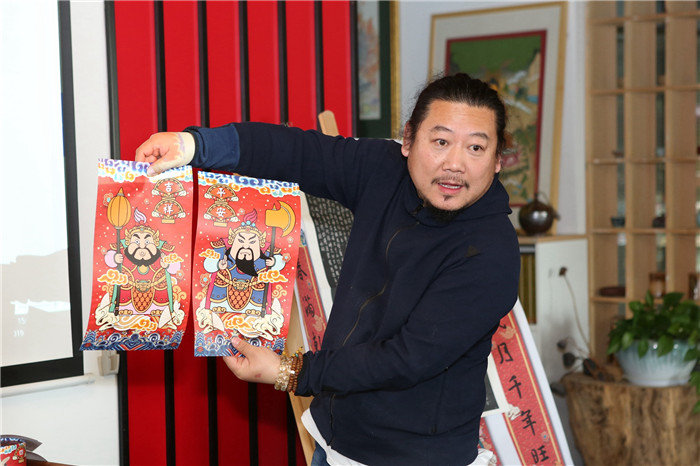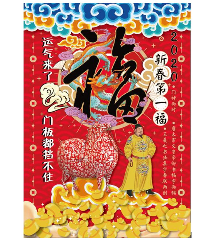 李总介绍说,“新春第一福”这组产品包括两个唐太宗李世民手书的福字,两副王羲之书法集字春联,两对门神,是一个非常强大的组合。可以一套贴在自家门上,另一套送给父母或者亲朋好友,既有文化气息又很实惠。