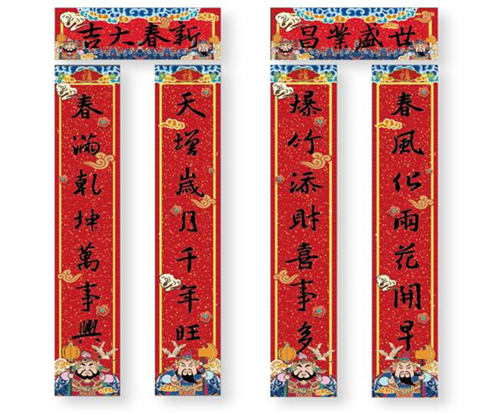 再后来,写名字渐渐被写祈福的吉祥话代替,又逐渐发展成写两句对偶的诗句,就是“桃符诗句”,也叫“楹贴”,这就是春联的雏形了。