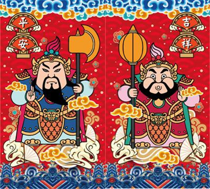 老百姓听说了这件事,也纷纷效仿,把秦、尉两将军的画像贴在门上,辟邪驱鬼,尊称为“门神”。