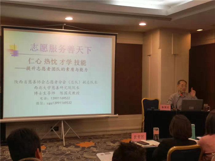 西北大学慈善研究院院长陈国庆、陕西省志愿服务联合会会长班理、陕西029公益服务中心理事长孔斌分别就《仁心 热忱 才学 技能—提升志愿者团队素质与能力》《拓展志愿服务空间》《志愿服务项目设计技巧及经典案例分析》三方面内容进行授课,详细讲解志愿服务项目策划与实施的流程。