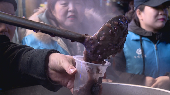 志愿者们为广大市民盛好腊八粥,端到他们面前,看着他们喝着香甜的腊八粥,大家都露出了灿烂的笑容。