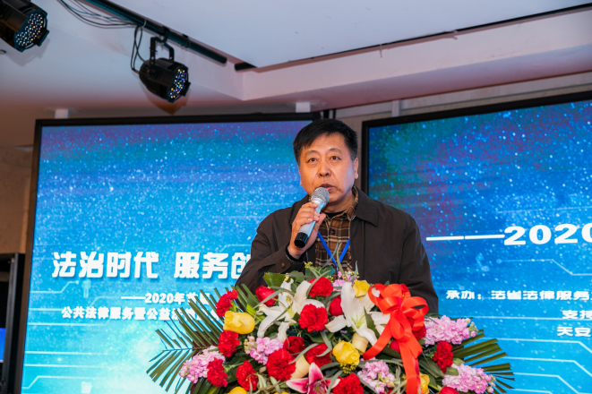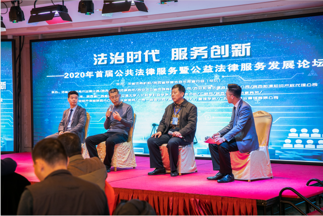 “法治时代·服务创新——2020年首届公共法律服务暨公益法律服务发展论坛”正式开始,省人大常委会原巡视员,省决策咨询委员会委员邬建新、陕西省慈善协会组联部王军利部长、法雀法务机构董事长唐智勇董事长共同上台,探讨公共法律服务的发展之路。