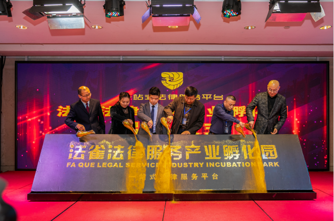 在现场热烈的气氛中,主持人诚挚邀请了陕西省广西商会会长潘贵安先生、邬建新先生、唐智勇先生、朱瑞先生、孙欢女士、王彦骁先生上台,共同参与法雀法务孵化器启动仪式,随着法雀法务孵化器正式启动,也标志着法雀法务在西北行业孵化品牌中迈出了坚实的一步。