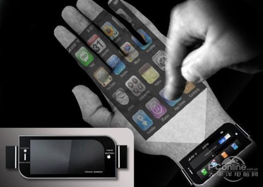 前些年,有消息表示苹果申请了一项有关3D全息投影的专利,于是当时网上就流传着这样一款拥有3D全息投影技术的智能手机iPhone Next G。这项技术看上去非常酷炫,其实目前市面上的红外投影无线键盘就是类似的技术,这项技术可以让我们拿着智能手环大小的设备,便可以在手掌中投射出屏幕和整个操作系统,这项技术未来很有可能实现。