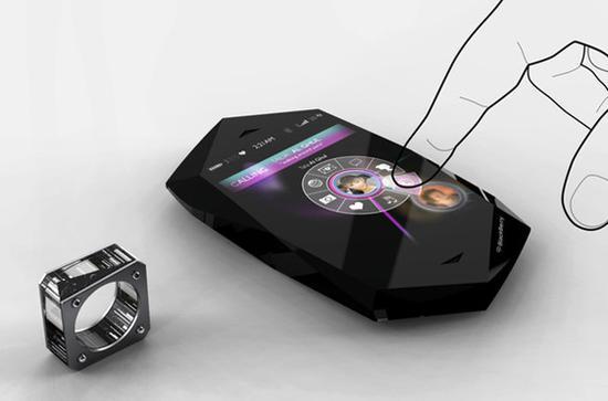 尽管目前传出黑莓正在出售手机业务,并且有可能将其出售给国产厂商TCL。不过前几年,网上流传着一部名为Empathy的概念机,其宝石外观机身看起来十分惊艳,还有其圆形的物理按键。当时流传着这款作品最大的亮点就是在于它能够根据用户的情绪来显示不同的颜色,这依赖于手机内部的生物测定传感器的指环配件,这项功能未来也是有可能实现的。