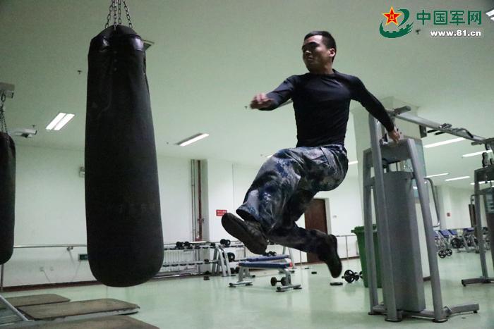 还记得功夫电影中的李小龙吗?那一个“李三脚”曾在全世界引起轰动。军校的格斗训练场上,同样有精彩的瞬间。凌空跃起,身影短暂地停留在空中,出腿生风,霎那间击打在沙袋上,沙袋在强大的撞击力下弹起。这身手,实在漂亮!