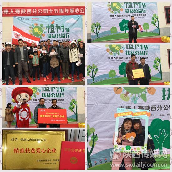 3月11日,在泰康人寿陕西分公司即将迎来成立十五周年之际,为积极响应国家“精准”扶贫的倡议,发扬“分享成功、奉献社会”的精神,分公司特向咸阳旬邑县太村镇贫困村民捐赠保额为400万的人身意外险及1300多株果树树苗。