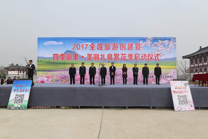2017年,为了全力争创国家全域旅游示范县,县上着力打造了全域旅游创建暨四季御果·美丽礼泉赏花季,进一步发展御杏园、御桃园、御石榴园等观光休闲示范园,释放“果旅融合”红利,延伸御果资源产业链,为县域经济社会发展增添蓬勃活力。 全域旅游创建暨四季御果·美丽礼泉赏花季活动从3月开始至6月底结束。启动当天,该县举办“花海礼泉 谁最好客”微信互动主题活动”、“十里花韵·一笑倾城”摄影展及摄影大赛、“桃花美·桃花开”广场舞大赛。赏花季还精心打造了昭陵讲“唐”、“2017年桃花节暨第三届喜德盛杯”自行车大赛、“花为媒·缘定礼泉”青春交友联谊活动、烽火村斗鸡大赛、袁家村乡村旅游高级研修班、“醴城花香•引凤来仪”征文大赛等特色主题活动,让八方游客在阳春三月尽情畅游花海礼泉的惬意,饱览自然美景。