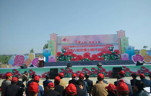 4月28日,2017中国生态旅游节洛南县系列活动启动暨洛南古城玫瑰小镇开园仪式正式。位于洛南县古城镇草店村的玫瑰小镇暖阳高照,春风佛面,柳枝摇曳,游人如潮。一簇簇郁金香竞相怒放,一朵朵玫瑰花含苞待绽,吸引着八方游客纷纷驻足,拍照留念。