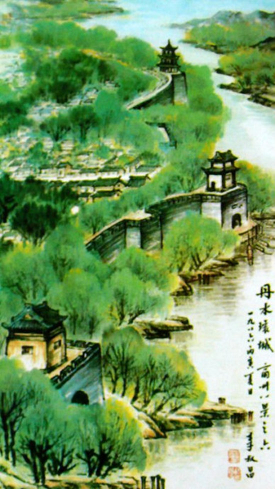 丹水,是丹江的古称,因丹鱼而得名。唐代张又新在《煎茶水记》中称丹江为天下名水。明清之际,有识之士在诸多佳景中遴选其出类拔萃者,列为“八景十观”,并配以诗文。“商州河曰丹水,自治西北隅出,湾环城南,抵东北隅,复折而东南,有襟带州城之势。”此指旧日丹江绕旧商州城之景,因此丹水环城被称为商州八景之一。
