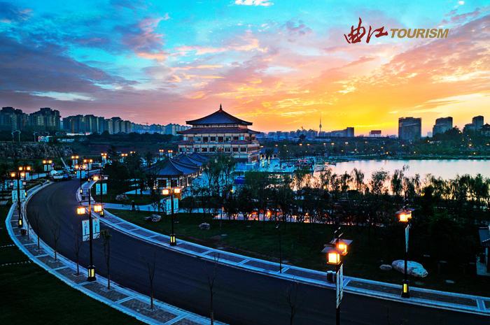 沿路风景:大雁塔南广场、大唐芙蓉园、曲江池遗址公园、唐城墙遗址公园、寒窑