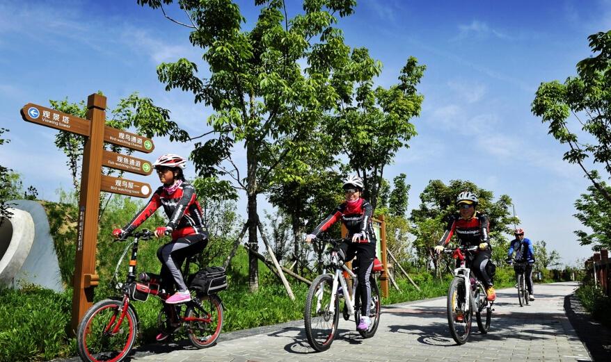 沣滨水镇路宽,非常适合散步骑行,附近能借的车也多,正好假期天气又好,爽翻了!周围花市、农家乐也多,你也可以自己带点零食,一言不合就席地而坐和大自然融为一体。