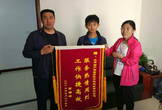5月25日上午, 客户高先生将印有“服务热情周到,工作快捷高效”的锦旗送到太平财险延安市分公司,感谢公司理赔工作人员热情高效的服务态度。
