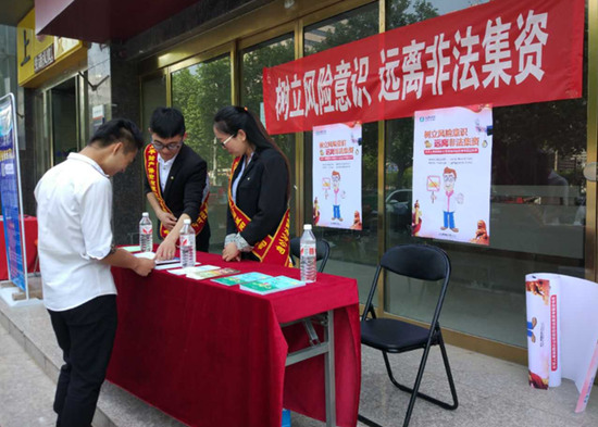 太平财险陕西分公司加强教育宣传,深入剖析非法集资产生的原因,识别非法集资诈骗要素,分析社会非法集资案例、保险行业非法集资典型案例,深入讲解非法集资对社会对行业造成的不良社会影响及罪责,要求全体员工要以遵守法律法规为纲,积极开拓市场,增强防范非法集资风险防控责任意识,增强依法合规经营意识;从源头上遏制非法集资高发蔓延的势头,保护公司、个人声誉及利益,为打造积极承担社会责任、服务社会稳定发展的央企形象做出积极贡献。