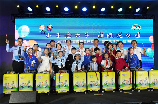 太平人寿代表爱心企业与主办单位代表一同向少年儿童赠送“交通安全教育魔法箱”