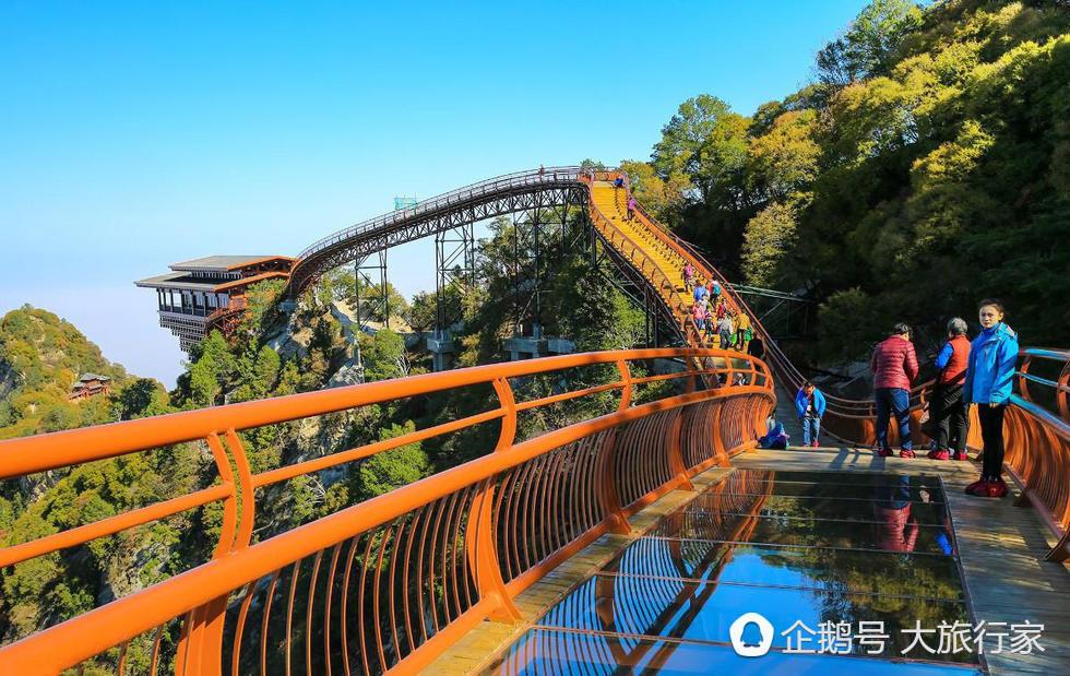 可以带老爸感受一下网红景区玻璃栈道。这是西北首条双向悬空玻璃栈道,与“天下第一险”华山相邻,栈道总长约455米,其中玻璃栈道69米。让人脚软、扶墙的玻璃栈道,悬于峭壁之上,四周是诱人景色,值得一来。