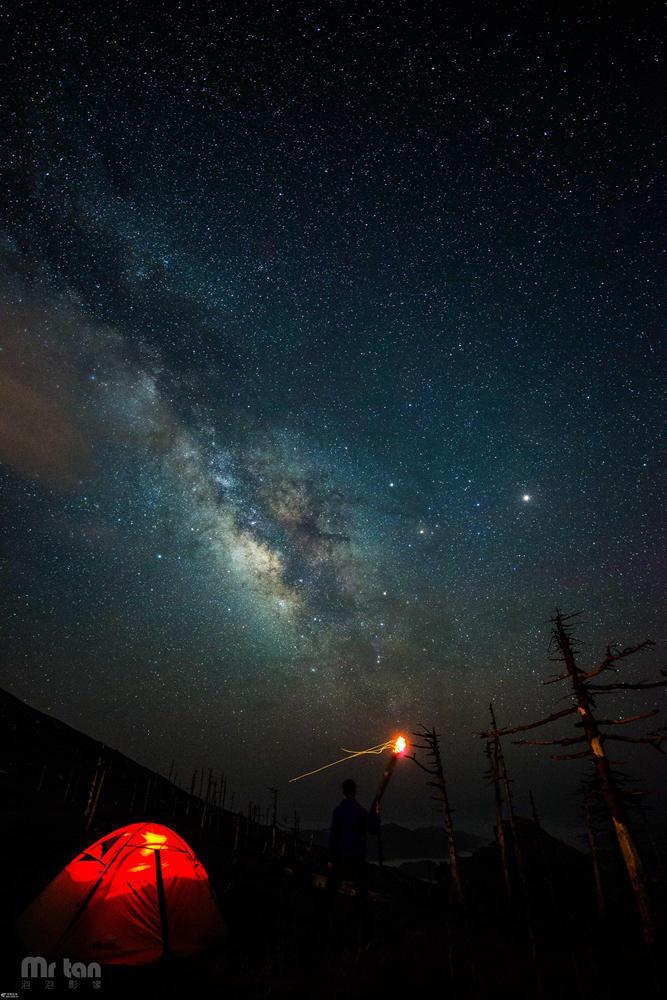 晚上在鹿角梁露营,可以看到绝美的星空,建议过夜一定多带上几件厚衣服。