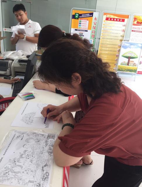 “保险为生活填色彩”填色墙活动也正是在永安职场开填,填色卡也开始发放客户和公众。