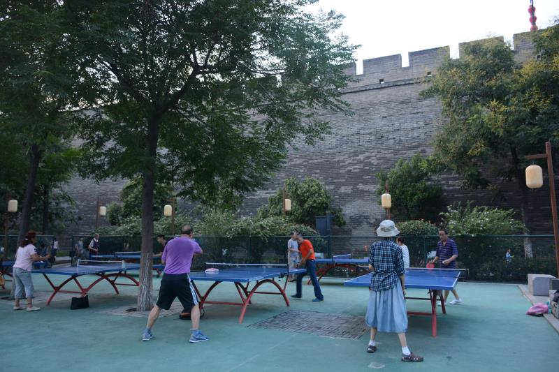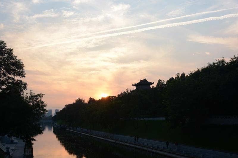 西安城墙始建于明太祖洪武三年(1370年),洪武十一年(1378年)竣工,是在明太祖"高筑墙、广积粮、缓称王"的政策指导下,在隋、唐皇城的基础上建成的,是中国乃至世界现存最完整的一座古代城垣建筑。1983年西安市开始了城河清淤,城墙维修的工程。经过三十年不断的维修改造,沿城墙外侧现已建成“环城公园”,成为城市居民晨练的绝佳活动场所。