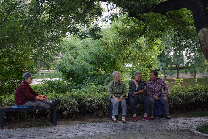 奶奶们坐在树下闲聊,这大抵是她们老年生活里最重要的社交活动与消遣方式。