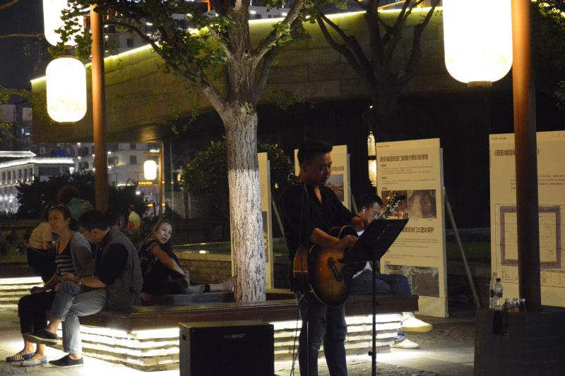 绕着城墙走,突然传来的一阵歌声,也许能让你忍不住驻足聆听。低吟浅唱,诉说着他的故事。路过的人一个两个都止住了脚步,围坐在他身边。有人拍照有人录像,有人什么也不做,低头静静地听,在他的歌声里,想着自己的故事。