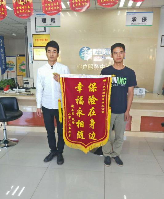 客户赵某家人为表达对太平财险理赔服务的感谢,特赠送锦旗。太平财险渭南市分公司负责人邓兆旭表示:“坚持以客户服务为导向、简化理赔手续,缩短理赔时效,尽心尽力为客户排忧解难。”在今后的工作中,太平财险将继续发挥央企责任,服务地方经济,展现精品保险品牌。