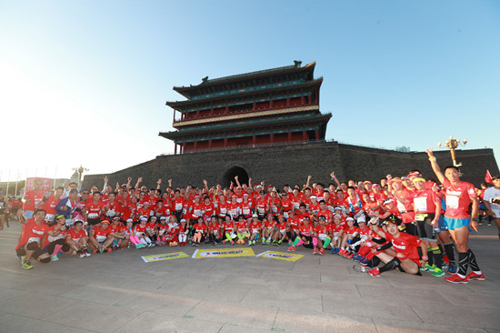 阳光跑团作为阳光保险的官方跑步团体,全年在全国范围内已经代表阳光保险参加了十余场大中型马拉松赛事。北京马拉松比赛现场,360名阳光跑团代表统一着装,快乐奔跑,传递“健康阳光”的生活理念,形成了赛场上一道靓丽的风景线。