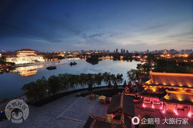 【第八站 大唐芙蓉园】还记得小雁塔的 “雁塔晨钟”吗?我们又跑到了第二个关中八景,那就是“曲江流饮”,每年的新科进士及第,都会在这里用曲水流觞的方式喝酒作诗,芙蓉园的夜景更令人流连忘返。