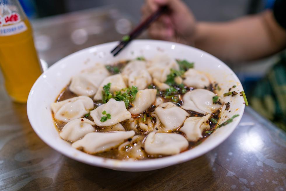 马二酸汤水饺:特有的香料味儿,混合着有汤汁儿的牛肉馅,美美的。再喝口热汤,香菜、辣椒、芝麻配起来特别的提味。味道重,口味酸,适合老陕。