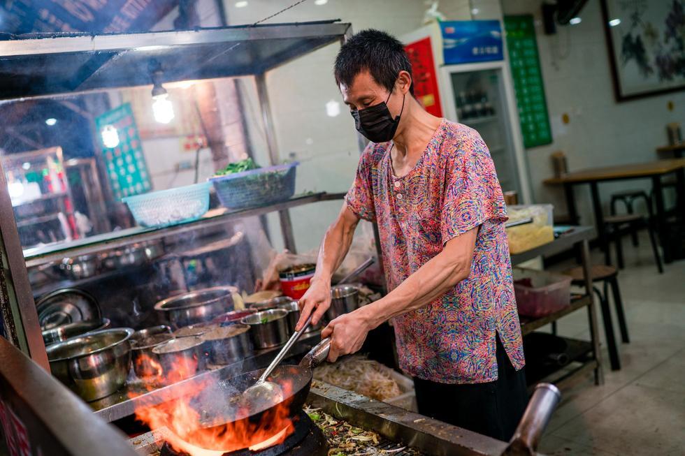 师傅还很配合的现场炒起了肉,姿势很到位。