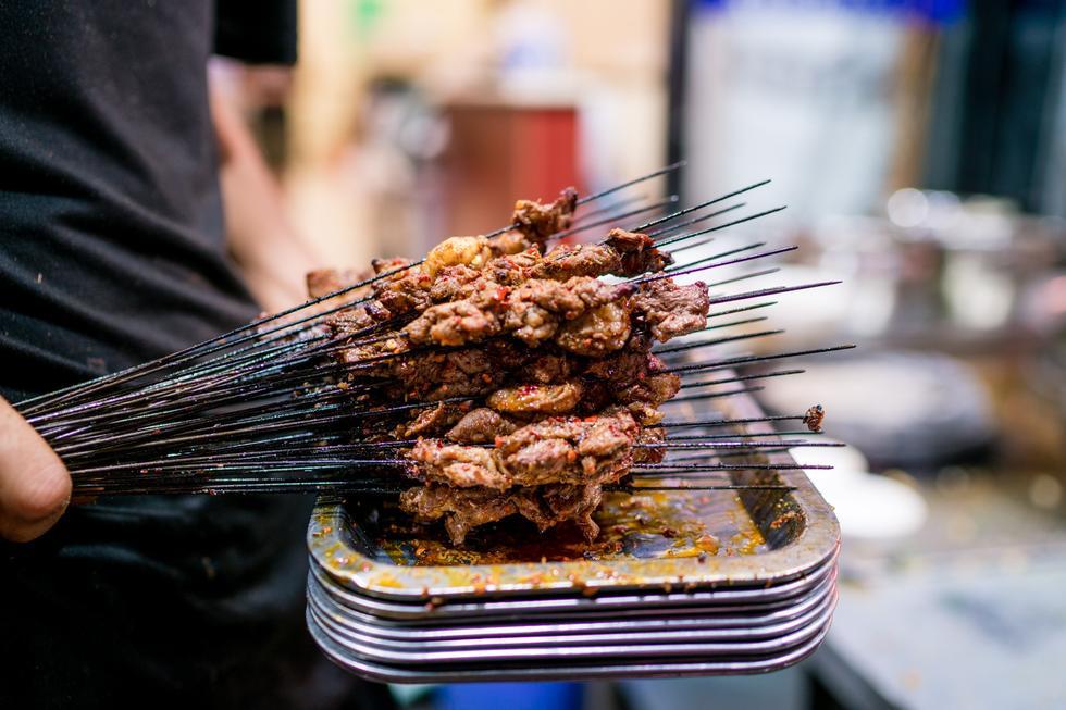 新亮烤肉:店面不是很大,大概有十几张桌子。品种很多,有肉筋、烤羊肉、羊腰子等等。