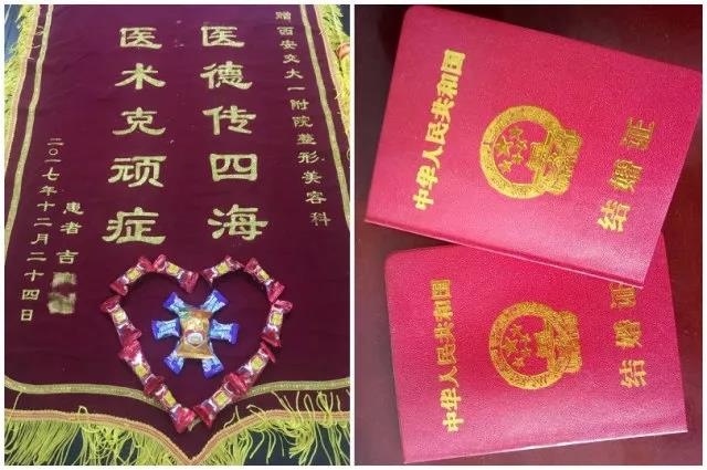 12月29日,西安交通大学第一附属医院整形美容颌面外科收到了前臂种耳朵的小伙吉某的锦旗和喜糖。