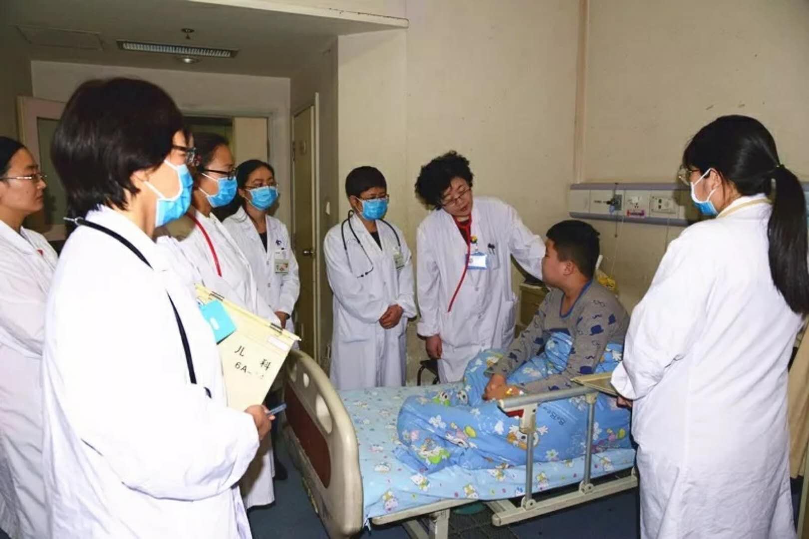 早晨8:00整,在儿科住院部医生办公室进行交接班,前一夜当值的夜班医生和夜班护士会向大家汇报这一整夜,病区里患儿的相关情况,新入院患儿、重危患儿、病情变化的患儿及特殊药物治疗的患儿(输血、化疗、生物制剂等)。