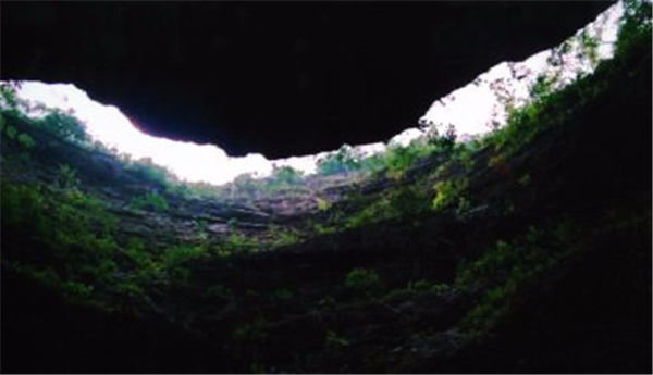 远观洞口,形似猫耳,又名猫耳洞;近观其内,主动顶部有通往上部的垂直洞和西南方向的水平洞,三洞相连,三洞相通,构成一个比较完整的溶洞系统。