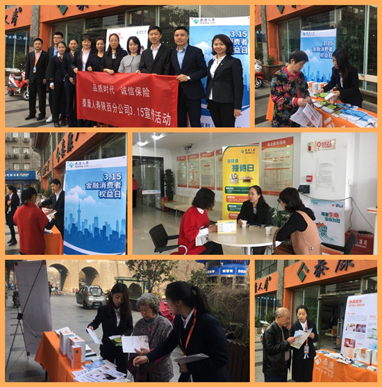 3.15当天泰康人寿陕西分公司组织了各部门十余人的专业金融保险知识宣传团队,对金融消费者权益知识、公司诚信销售与客户体验服务举措、养老社区理念、特色微理赔服务等在现场进行宣传。