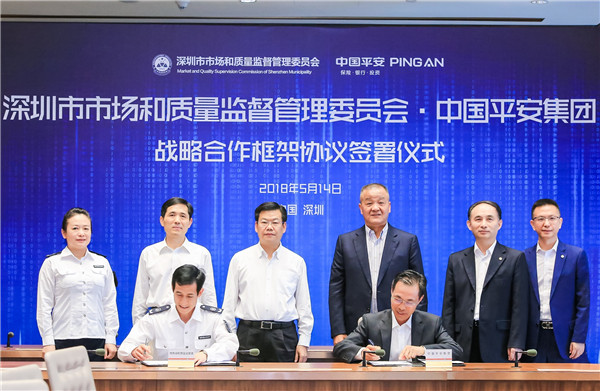 5月14日,中国平安与深圳市市场和质量监管管理委员会签署战略合作协议,双方将依托平安集团在智能认知、人工智能、区块链和云科技等方面的先进技术,将市场和质量监管作为重点合作区域,共同推动深圳智慧市场监管体系的构建。深圳市副市长黄敏, 平安集团董事长兼首席执行官马明哲等出席签约仪式。