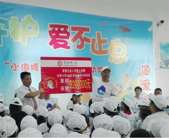 继去年“小海豚”贵州之旅后,富德生命人寿“小海豚计划”今年再次在贵州启动。5月31日,富德生命人寿在贵州普定县党固小学召开2018“小海豚计划”全国启动大会,并为党固小学捐赠总保额为220万元的“小海豚专属保障计划”。