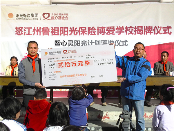 为积极响应国家政策号召,践行社会责任与担当,10月23日,阳光保险第56所博爱学校揭牌仪式暨“心灵阳光计划”落地仪式在云南省怒江州鲁掌镇鲁祖完全小学举行。这是阳光保险在云南援建的第3所博爱学校。