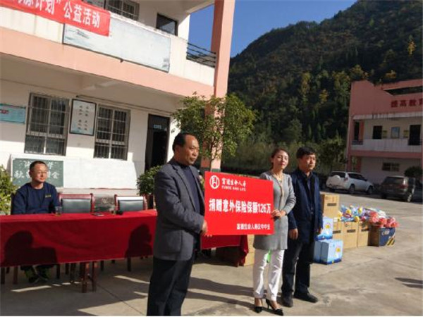 10月26日,富德生命人寿汉中中支2018年“小海豚计划”公益捐赠活动在汉中市勉县定军山镇沟口小学顺利举办。汉中中支副总经理白爱玲、办公室主任丁鹏飞、运营部经理魏炜及志愿者、沟口小学师生参加此活动。此次活动受到了定军山镇政府的大力支持与鼓励,定军山镇长及副镇长出席此次捐赠仪式。