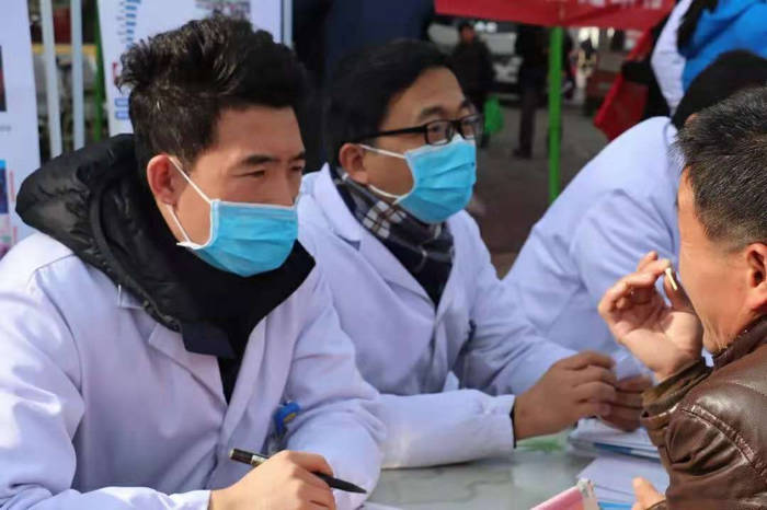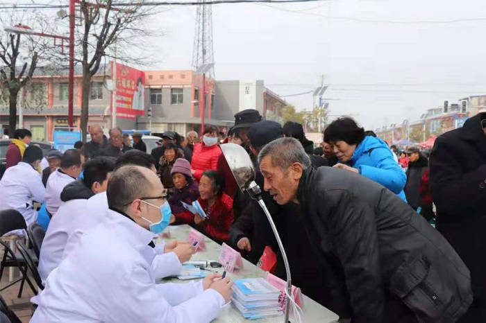 血液科刘华胜副教授、中医科孙连庆副教授、消化内科初大可副教授、耳鼻喉科康伟主治医师、眼科史瑞昕医师、口腔科赵飞医师为群众进行义诊检查及健康指导。