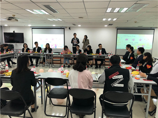 活动第一环节为自我介绍,来自五湖四海的青年为了理想汇聚太平,积极工作,精彩生活。工作之余兴趣爱好吸引大家相互交流,相互分享。通过“暖男测试题”、“成语接龙”、“数字游戏”等益智类游戏,现场气氛轻松活泼,小伙伴们失误频频,笑料百出。呼啦圈竞速赛,3男3女手拉手将呼啦圈从队伍最左运至最右队员,考验个人协调性及团队协作能力,圈圈相扣象征产寿融合、密不可分的关系,青年伙伴们充分展示了产寿家人共同面对挑战展示出的凝聚力。