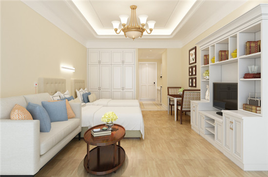 为了不影响入住老人的起居,工作人员带记者前往即将开放的区域参观了样板间。房间所有地面都作了防滑处理;居室内的桌子、椅子、电视柜、突出的墙角均做了弧形圆角设计,避免老人磕碰受伤;房间硬件的细节中,每个房间墙上的小红绳引起了大家的注意。工作人员说这是紧急报警装置,老人在生活中碰到突发事件、不舒服、跌倒等情况,只要一拉绳子泰康的医疗管家就会立即赶到。房间内超大屏幕电视、洗衣机、热卫浴系统、微波炉、新风系统等应有尽有,做到了名副其实的“拎包入住”。