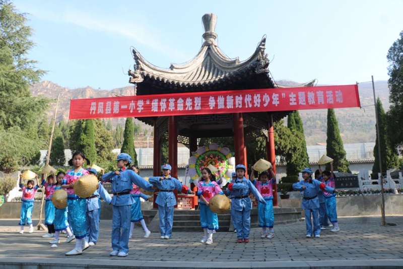 4月1日,丹凤县第一、第二小学、育才学校师生及丹江社区党员干部群众共计1300余人,来到商洛市丹凤县烈士陵园,举行了以“缅怀革命先烈,争做新时代少年”为主题的宣传教育活动。