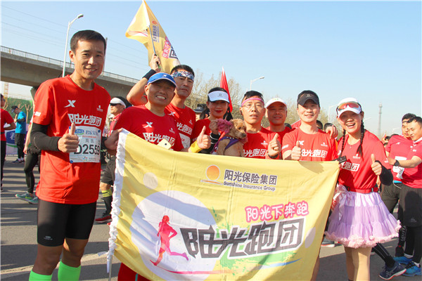 为传递“阳光下奔跑”的健康理念,阳光保险特别组织了阳光跑团近200人参加本次马拉松比赛,来自全国各地的阳光跑团选手身着红色团服,成为了赛道上一道靓丽的风景线。