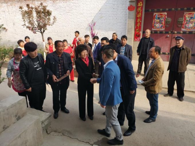 2019年4月3日,芝阳镇南英村巷道内敲锣打鼓,热闹非凡。市委常委、宣传部长沙利娜为芝阳镇南英村30户烈属、军属、退役军人家庭悬挂光荣牌。