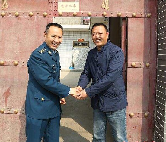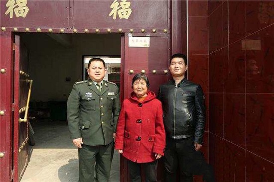 仪式结束后,出席仪式的县级领导上门为现役军人和退役军人现场悬挂光荣牌。(记者 冯英杰 许瑶)